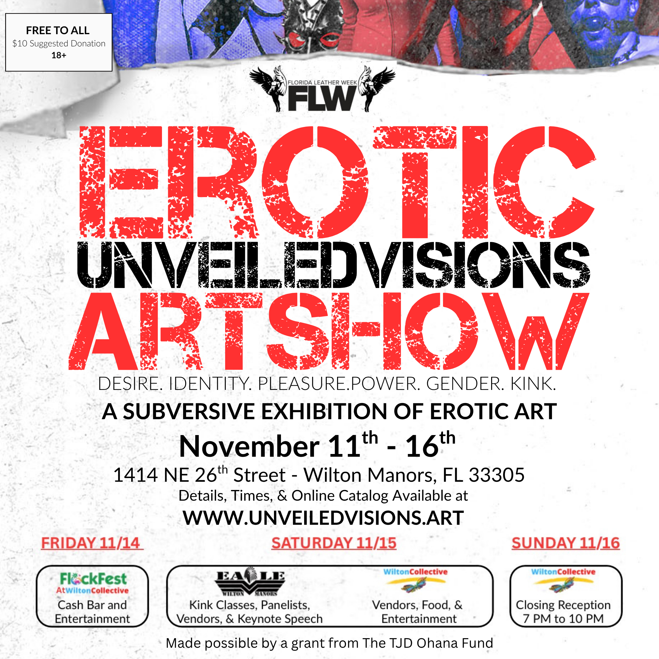 Due to issues beyond our control and the loss of financial support due to the current political climate, the planned Boundless Block Party has been cancelled. In it’s place there will be expanded offerings at the Unveiled Visions Erotic Art Exhibition